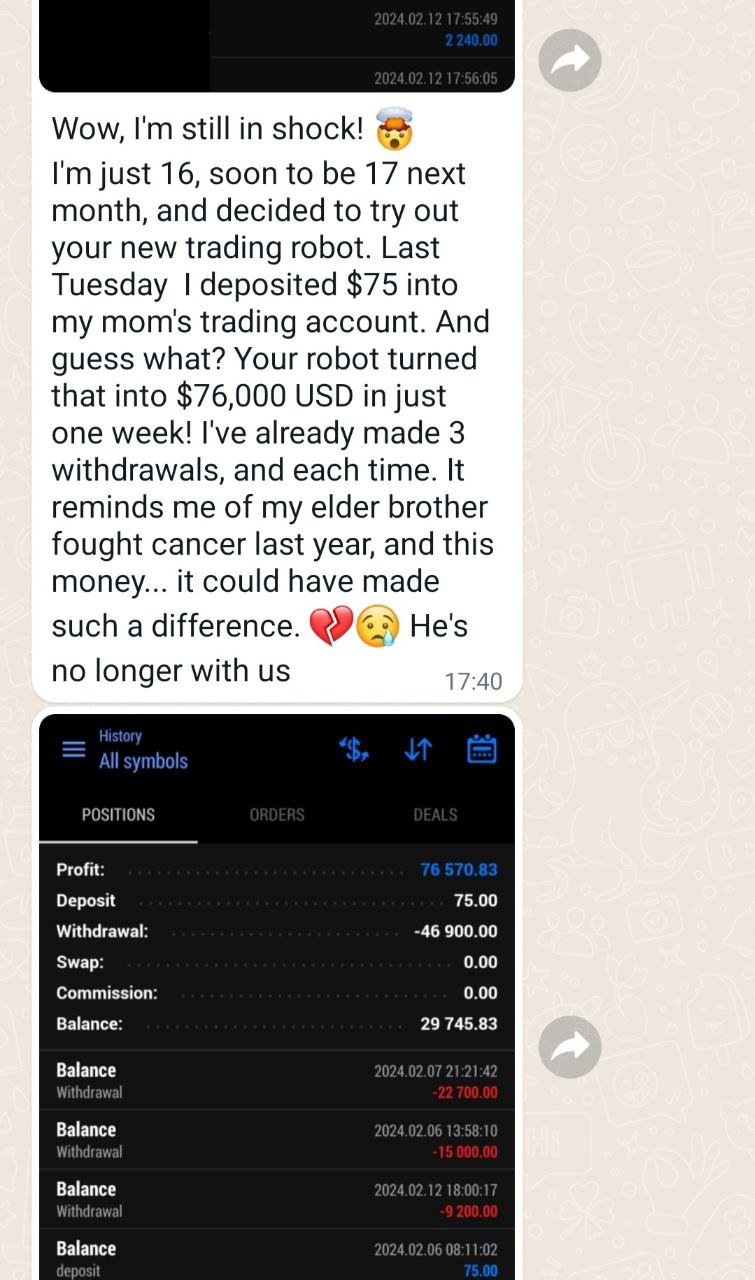 16-Year-Old Achieves $75K Weekly Earnings with Our Robot!